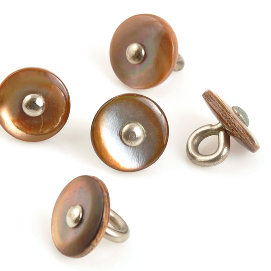 Button-9mm-Victorian Shell Boot-Shank-Chestnut and Steel-Quantity 5