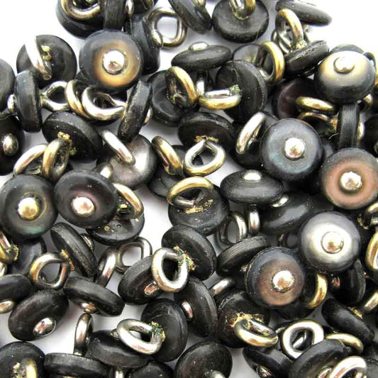 Button-9mm-Victorian Shell Boot-Shank-Charcoal and Steel-Quantity 5