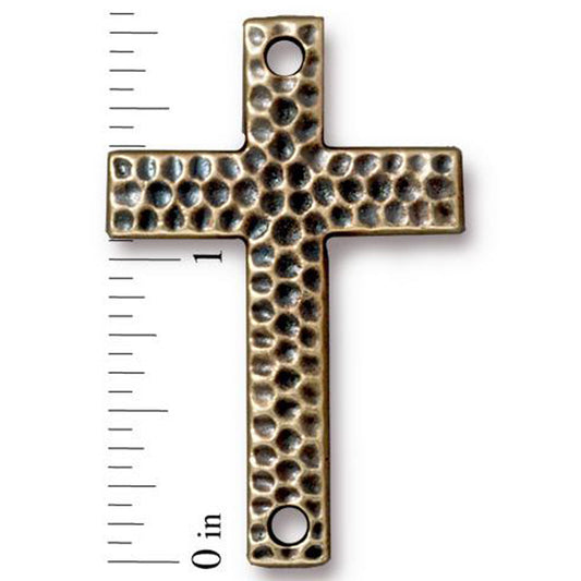 TierraCast-Pewter-40x26mm Hammertone Cross Connector-Two Hole-Antique Brass-Quantity 1