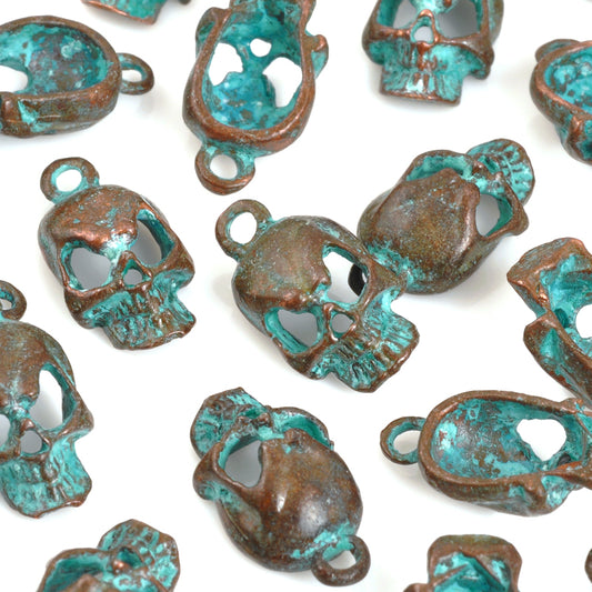 Casting Charms-10x19mm Skull-Green Patina-Quantity 1