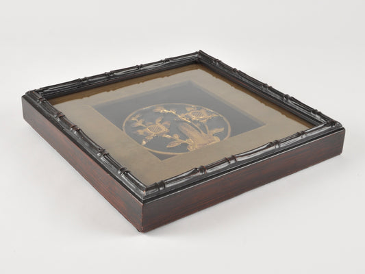 Vintage Velvet Matted and Shadowbox Framed Black and Gold Japanese Decorative Medallion-Wall Art Decor