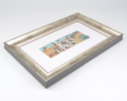 Original Mixed Media Art Custom Framed-Summer-Ornate Silver Wood Framed Vintage Beadwork Art-Tamara Scott-Bead Embroidery Art