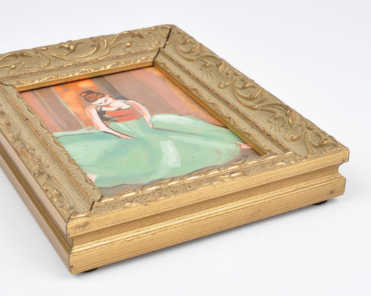 Original Oil Painting on Wood Panel-The Dancer-Ornate Gold Wood Framed Vintage Ballerina Painting-Tamara Scott-5x6 1/2 Inches-Gift For Her