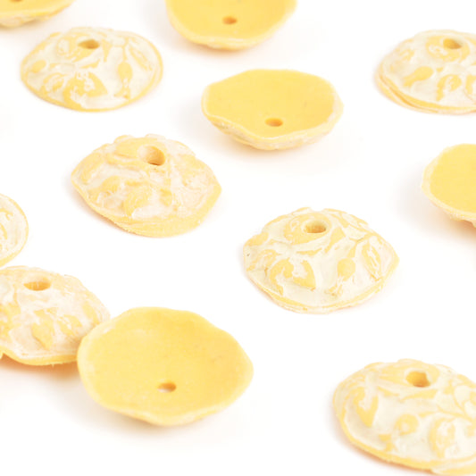 Ceramic Beads-18x5mm Bead Cap-Baroque Vines-Golden Cream-Quantity 1