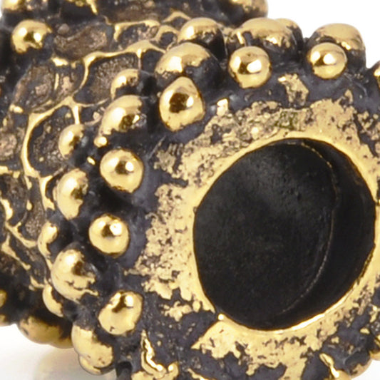 Casting-11x10mm Granular Rim Faceted Tube Bead-Antique Gold-Quantity 1