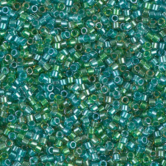 Seed Beads-11/0 Delica-985 Inside Color Lined Green-Blue Mix-Miyuki-7 Grams