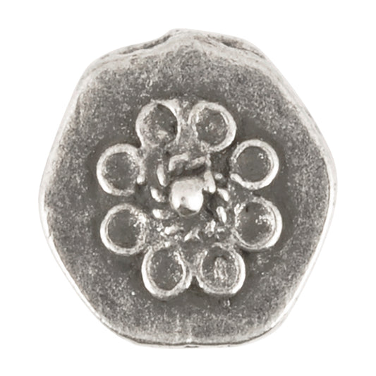 Pewter-7x15mm Etched Saucer Bead-Antique Silver-Quantity 1