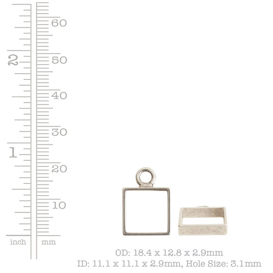 Nunn Design-Bezel-12mm Open Back Square-Single Loop-Antique Silver-Quantity 1