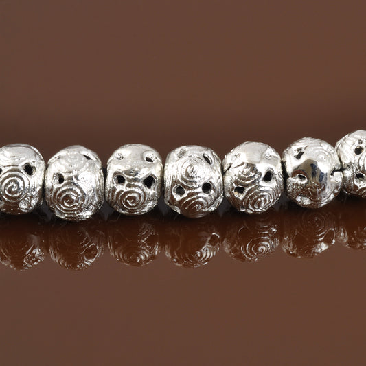 Brass-7mm Round Bead-White Metal-Quantity 5