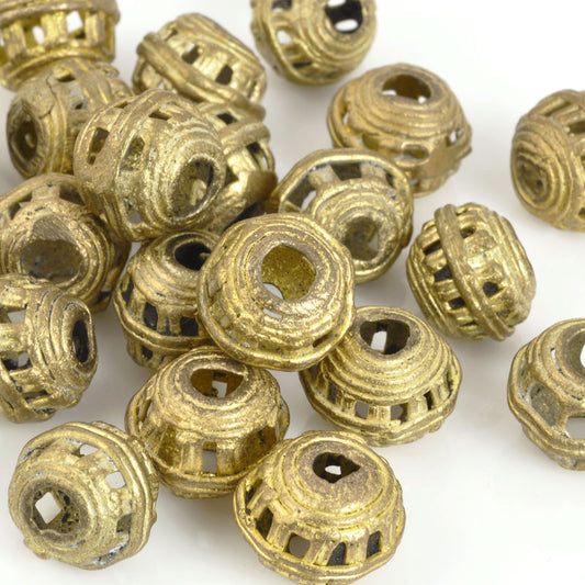 Brass Beads-13-17mm Striped Cage Round Filigree Globe Beads-Africa-Quantity 1