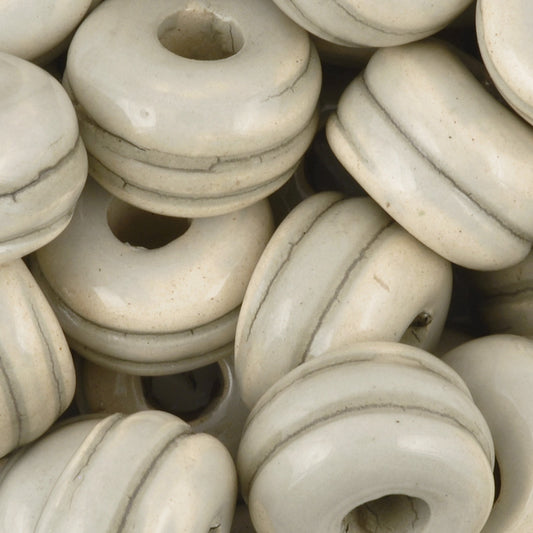 Ceramic Beads Wholesale-17mm Rondelle Bead With Grooves-Taupe Sage Enamel-Quantity 10