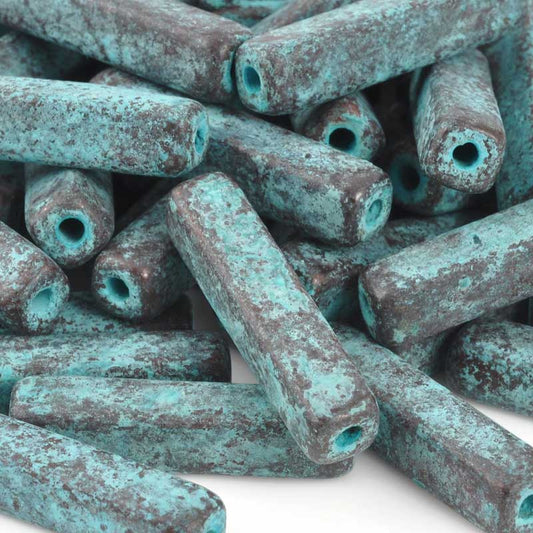 Ceramic Beads Wholesale-30x6mm Tube-Green Patina-Quantity 20