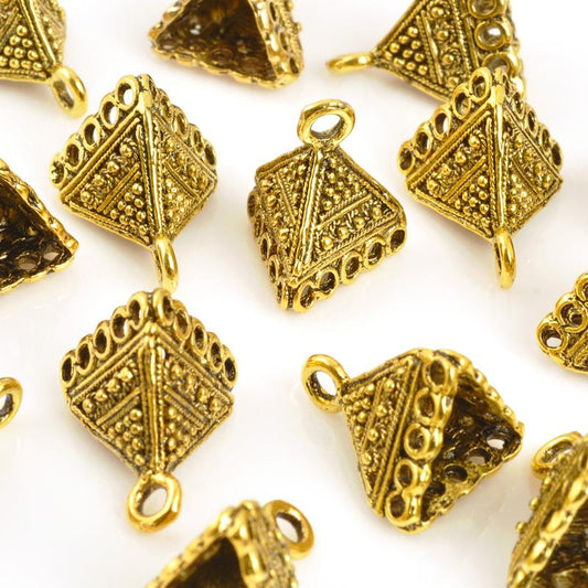 Pewter Connectors Wholesale-15x18mm Ornate Triangle-Antique Gold-Quantity 10
