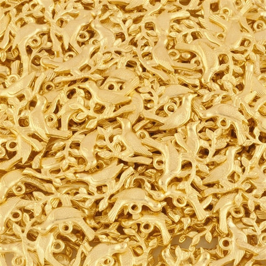 Pewter Charms Wholesale-18x19mm Dove On Olive Branch Pendant-Matte Gold-Quantity 10