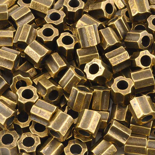 Casting Beads Wholesale-12x9mm Imprint Tube Bead-Antique Gold-Quantity 10