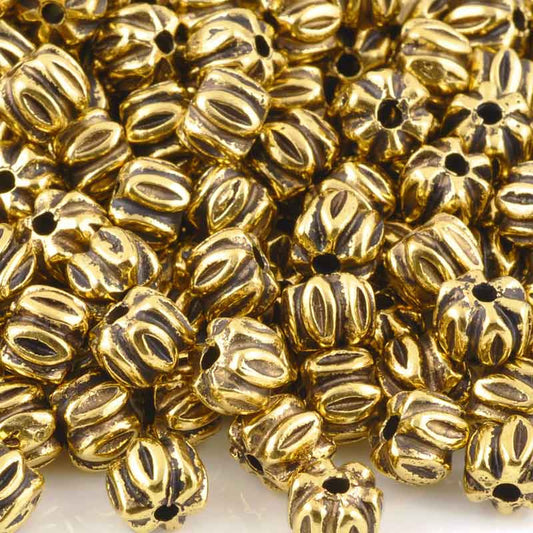 Casting Beads Wholesale-7x9mm Ridged Rondelle-Antique Gold-Quantity 20