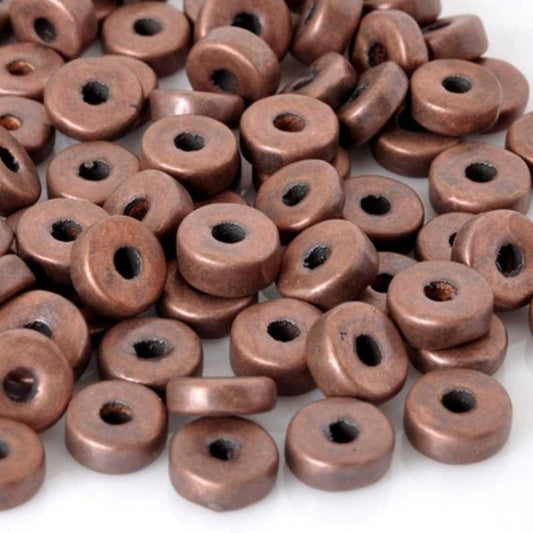Ceramic Beads Wholesale-6mm Round Disc-Antique Copper-10 Grams
