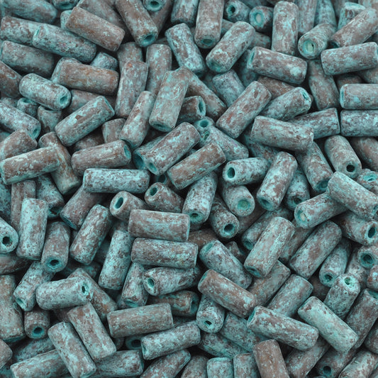 Ceramic Beads Wholesale-3mm Tube-Green Patina-Quantity 10 Grams