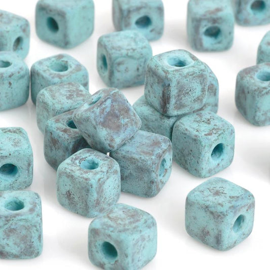 Ceramic Beads Wholesale-5mm Cube-Green Patina-Quantity 50