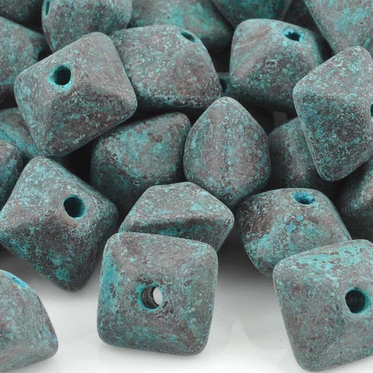 Ceramic Beads Wholesale-11mm Octahedron-Green Patina-Quantity 10