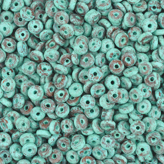 Ceramic Beads Wholesale-6mm Round Disc-Green Patina-10 Grams