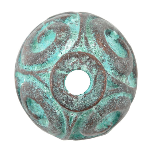 Jewelry Findings Wholesale-23x20mm Large Swirl Bead Cap-Green Patina-Quantity 4