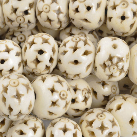 Hand Carved Beads, Pendants, Cabochons, and Rings in a Variety of Shapes and Sizes including Feathers, Flowers, Skulls, Fish, Monkeys, Butterflies, Birds, Dragons, Cats, Seahorses, Dragonflies, Crosses and Masks.