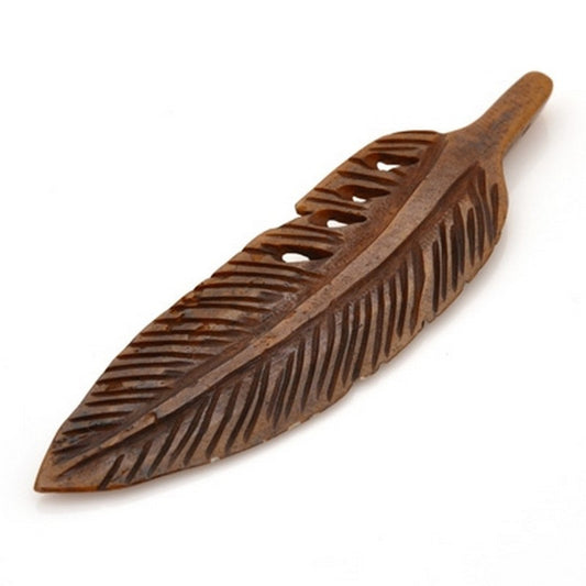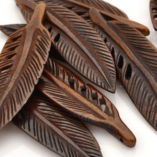 Carved Pendants-Carved-15x75mm Dark Tone Feather-Two Sided-Quantity 1