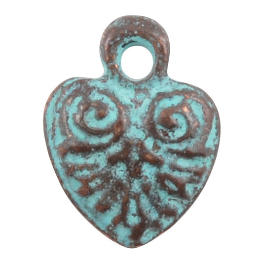 Casting Charm-10x13mm Tiny Ornate Heart-Green Patina-Quantity 1