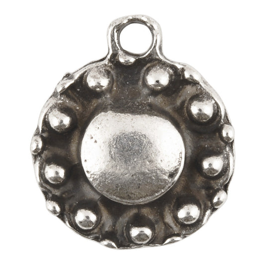 Casting Charms-14x17mm Round Granulated Frame-Antique Silver-Quantity 1