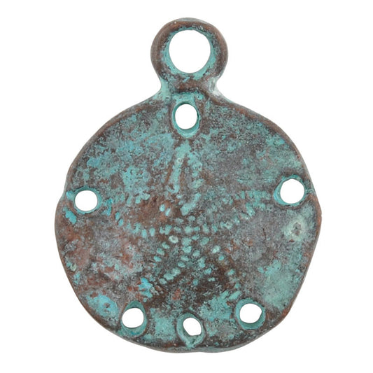Casting Charms-16x20mm Sand Dollar-Green Patina-Quantity 1