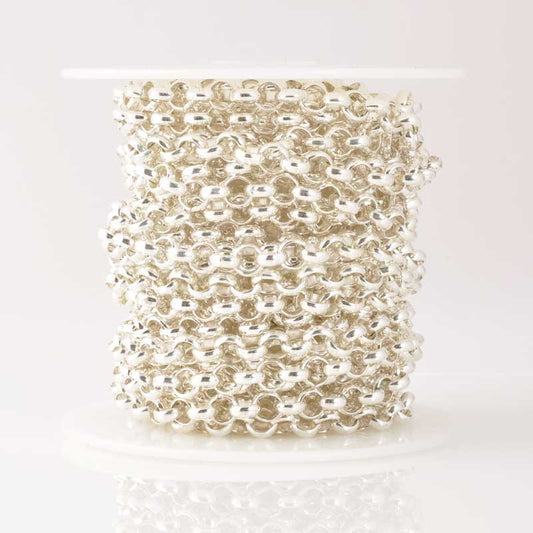 Jewelry Chain-8mm Large Brass Rolo-Silver-Sold by the Foot