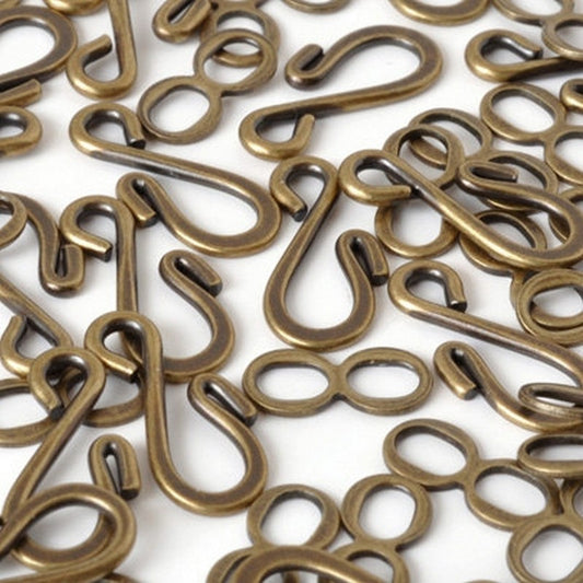 Clasp-Hook & Eye Clasp-Antique Brass-Quantity 20