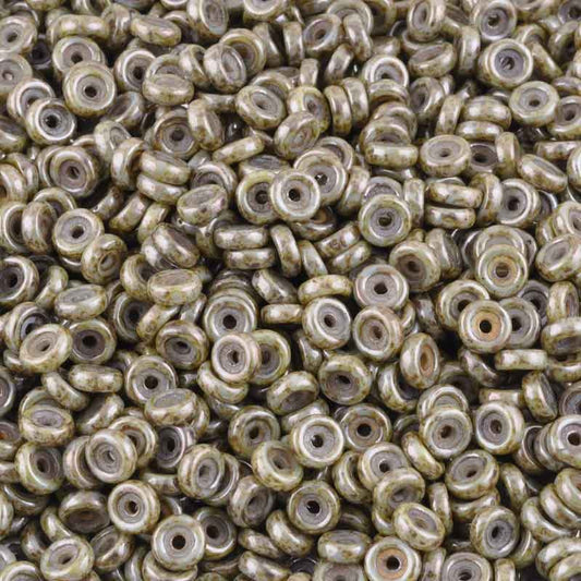 Seed Beads-2x4mm MiniDuo-243 Chalk Travertine Dark-Czech-7 Grams