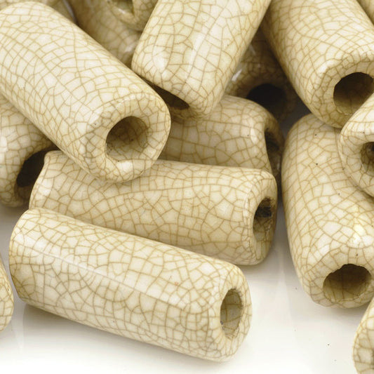 Ceramic Beads-14x35mm Cylinder Tube-Antique Ochre-Quantity 1
