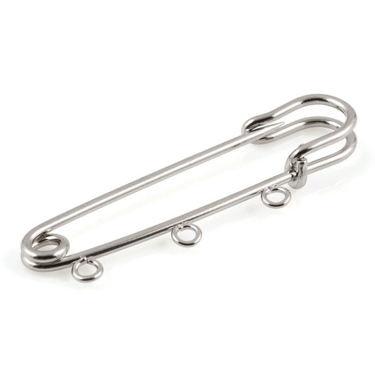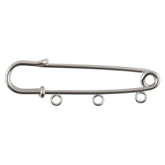 Findings-15x50mm Safety Pin Connector-Three Hole-Nickel-Quantity 1