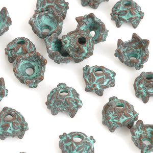 Hand-formed Casting Findings are Lead-free Base Metal Finished with Green Patina. (Patinas Vary)