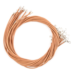 High quality Greek pre-cut 1.5mm leather necklace. The necklace fastens with a sterling silver plated lobster clasp. Just add a pendant, charm or beads for a finished personalized eclectic look.Necklace Length : 18 inchesLeather Color: Natural Lobster Clasp: Sterling Silver PlatedQuantity: 1 Necklaceall sizes are approximate