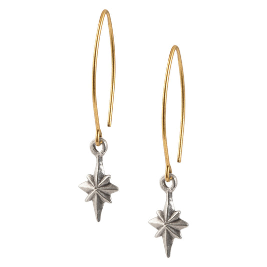 Finished Jewelry-Star Dagger Open Oval Mini Earrings-Gold + Silver-One Pair