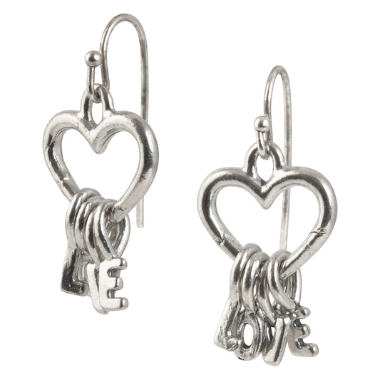 Finished Jewelry-Heart Love-Ear Wire Ball Earrings-Antique Silver-One Pair