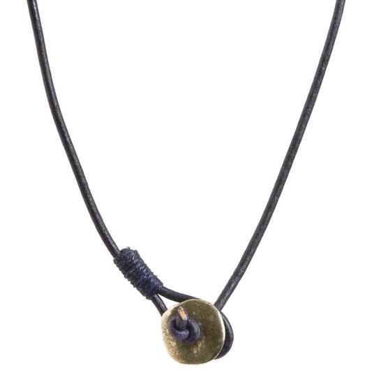 Finished Jewelry-Leather-Gold Disc With Crystal Necklace-16 Inches