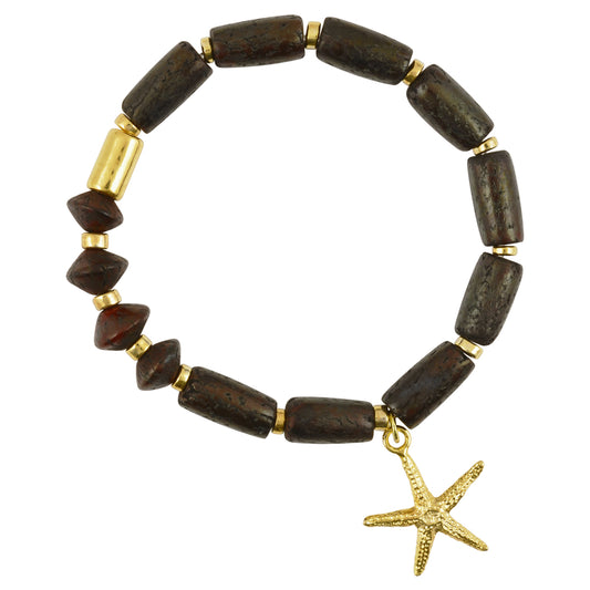 Finished Jewelry-Chocolate Velvet-Gold Starfish Stretch Bracelet