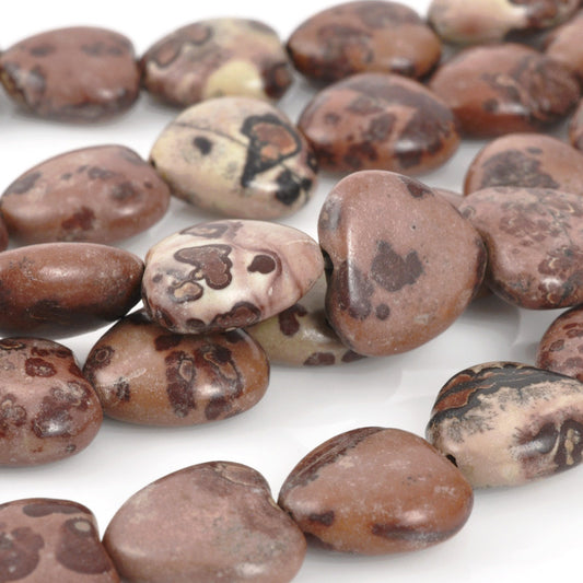 Gemstone Beads-12mm Red Leopard Skin Puff Heart-Quantity 2 Beads