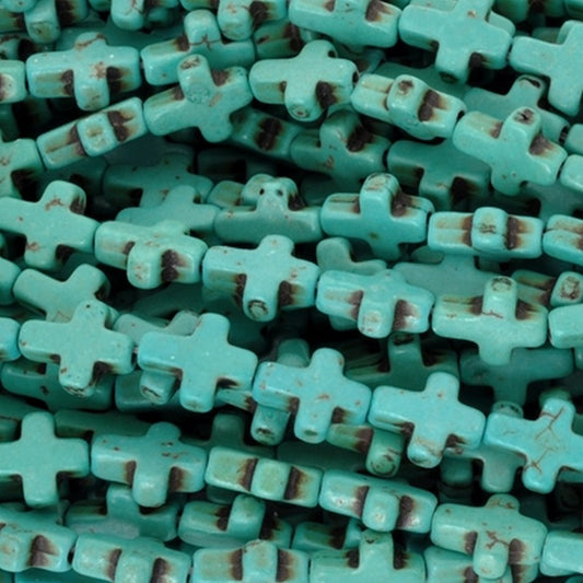 Gemstone-8x10mm Cross-xsmall-Howlite-Multi Color-Quantity 12 Loose Beads