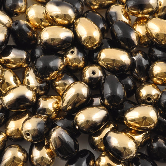 Czech Glass-11x8mm Drops-Jet Amber-Czech-Quantity 5