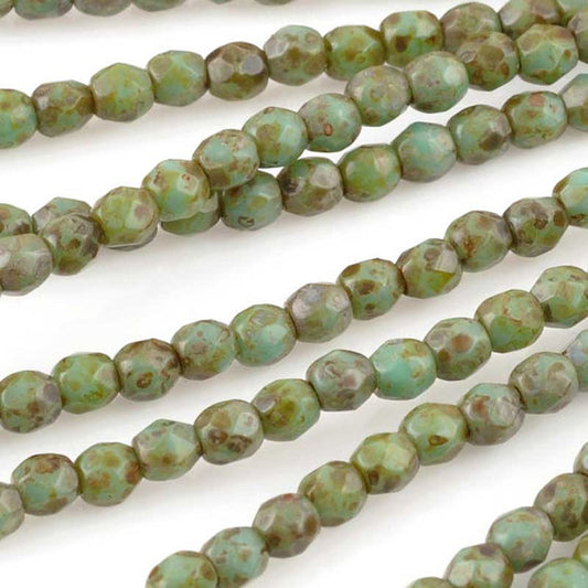 Glass Beads-3mm Fire Polish-Turquoise Picasso-Czech-Quantity 50 Loose Beads