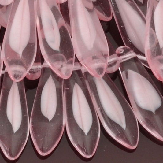 Czech Glass-5x16mm Dagger Bead-Matte Crystal-Light Pink-Czech-Quantity 1