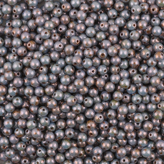 Glass Beads-4mm Round-Chalk White Blue Luster-Czech-Quantity 50 Loose