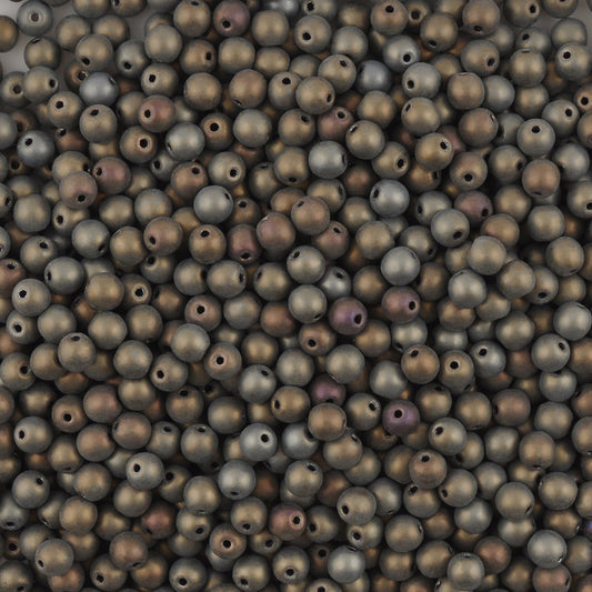 Glass Beads-4mm Round-Jet Matte Brown Iris-Czech-Quantity 50 Loose