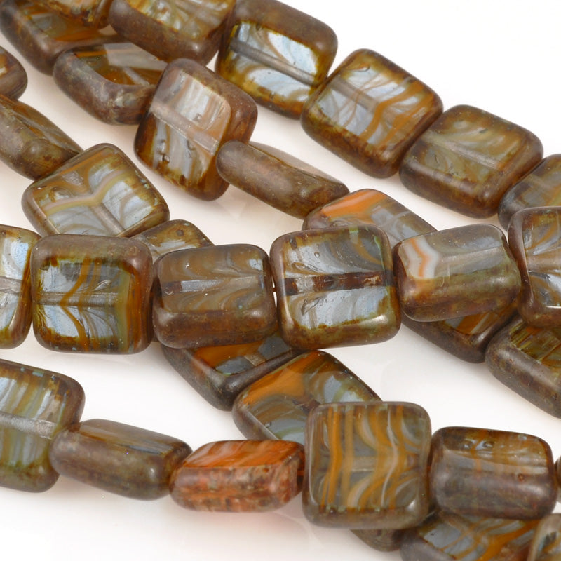 Glass-9mm Flat Square-Hurricane Glass-Blue Green Swirl-Czech-Quantity 25